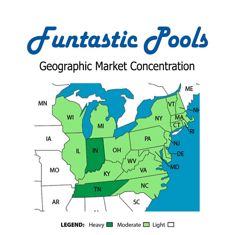 While Funtastic Pools have been installed across the United States you are most likey to find a Funtastic Pool in need of a Replacement Pool Liner in: Connecticut, Delaware, Illinois, Indiana, Iowa, Kansas, Kentucky, Maine, Maryland, Massachusetts, Michigan, Mossouri, Nebraska, New Hampshire, New York, Ohio, Pennsylvania, Rhode Island, Tennessee, Vermont, West Virginia and Wisconsin.