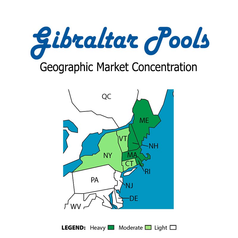 While Gibraltar Pools have been installed in states outside of New England you are most likey to find a Gibraltar Pool in need of a Replacement Pool Liner in: Connecticut, Maine, Massachusetts, New Hampshire, New York, Rhode Island and Vermont.