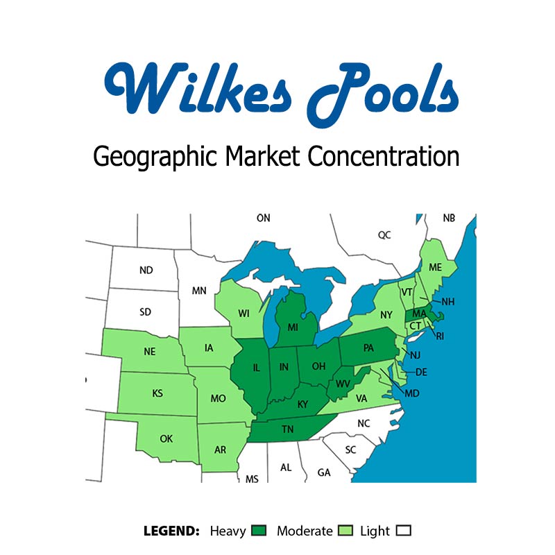 While Wilkes Pools have been installed across the United States you are most likey to find a Wilkes Pool in need of a Replacement Pool Liner in | Arkansas, Connecticut, Delaware, Illinois, Indiana, Iowa, Kansas, Kentucky, Maine, Maryland, Massachusetts, Michigan, Missouri, New Hampshire, New Jersey, New York, North Carolina, Ohio, Pennsylvania, Rhode Island, Tennessee, Vermont, West Virginia and Wisconson.